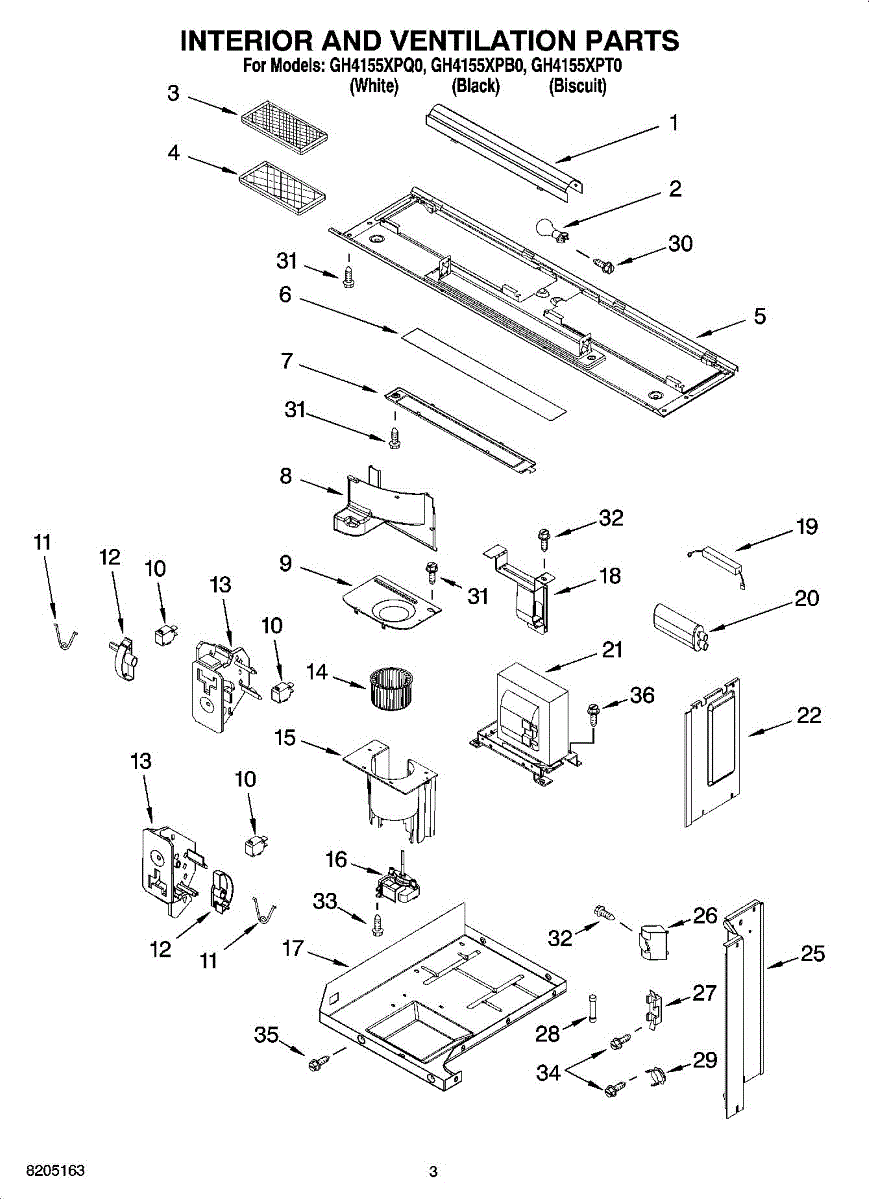 Parts for Whirlpool GH4155XPB0: 03 - Interior And Ventilation Parts