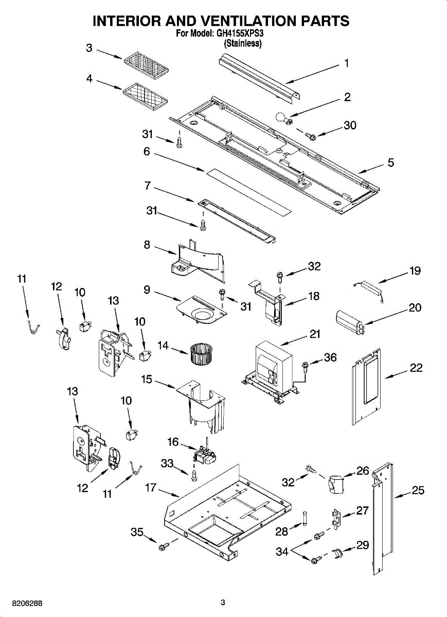 Parts for Whirlpool GH4155XPS3: 03 - Interior And Ventilation Parts