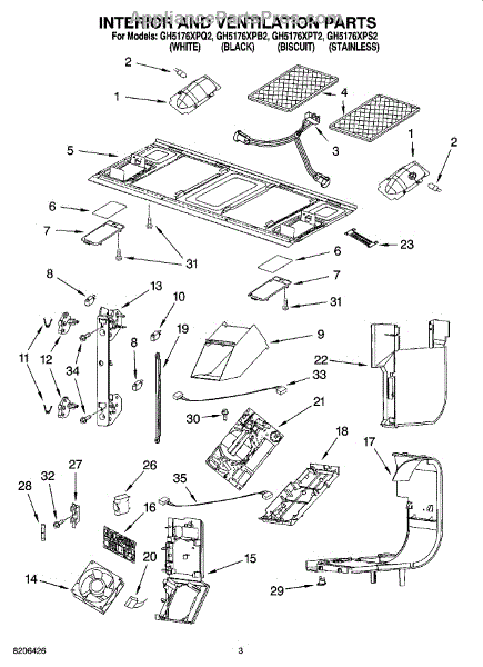 Parts for Whirlpool GH5176XPQ2: 03 - Interior And Ventilation Parts