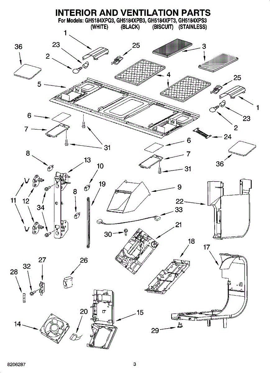 Parts for Whirlpool GH5184XPQ3: 03 - Interior And Ventilation Parts