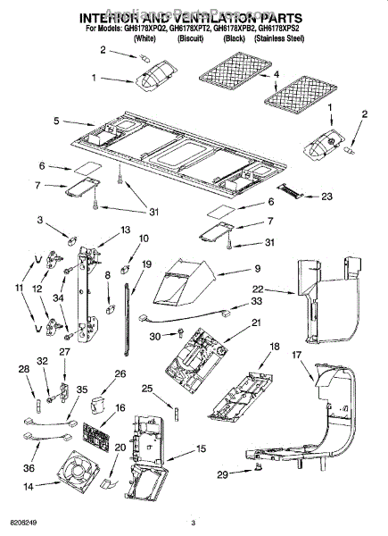 Parts for Whirlpool GH6178XPT2: 03 - Interior And Ventilation Parts