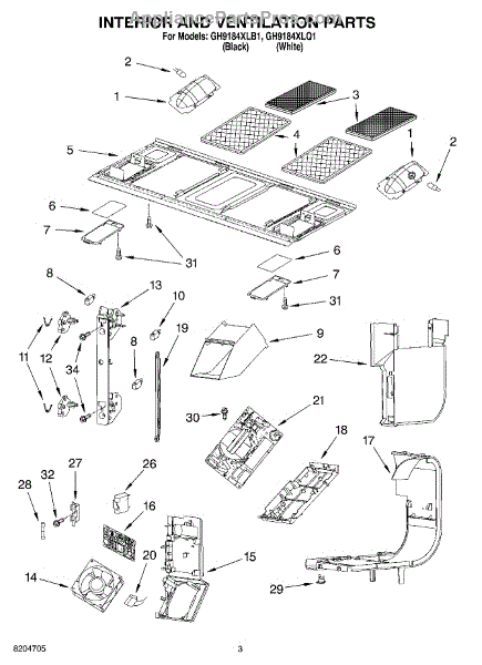Parts for Whirlpool GH9184XLQ1: 03 - Interior And Ventilation Parts
