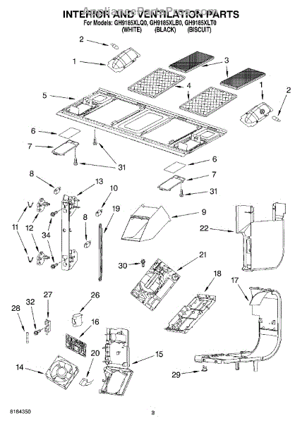 Parts for Whirlpool GH9185XLQ0: 03 - Interior And Ventilation Parts