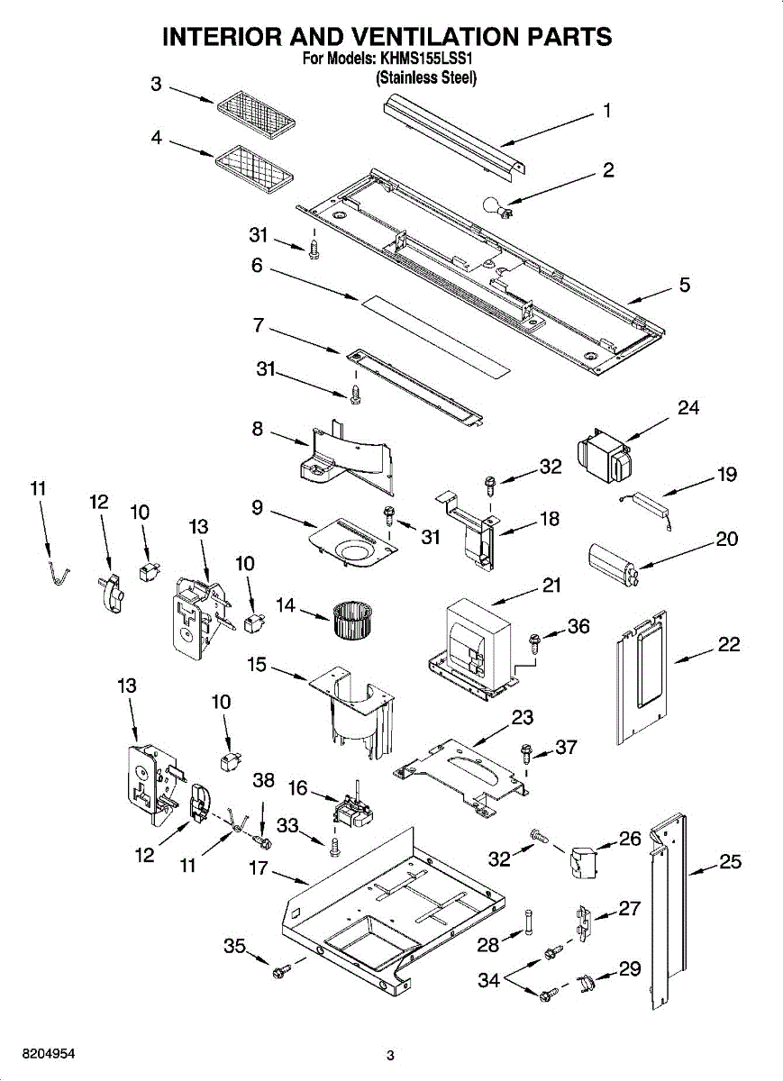 Parts for Kitchenaid KHMS155LSS1: 03 - Interior And Ventilation Parts