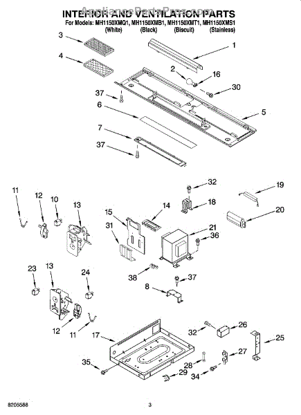 Parts for Whirlpool MH1150XMT1: 03 - Interior And Ventilation Parts