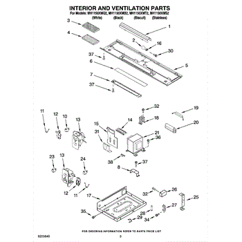 Parts for Whirlpool MH1150XMT2: 03 - Interior And Ventilation Parts