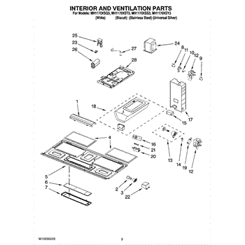 Parts for Whirlpool MH1170XST3: 03 - Interior And Ventilation Parts