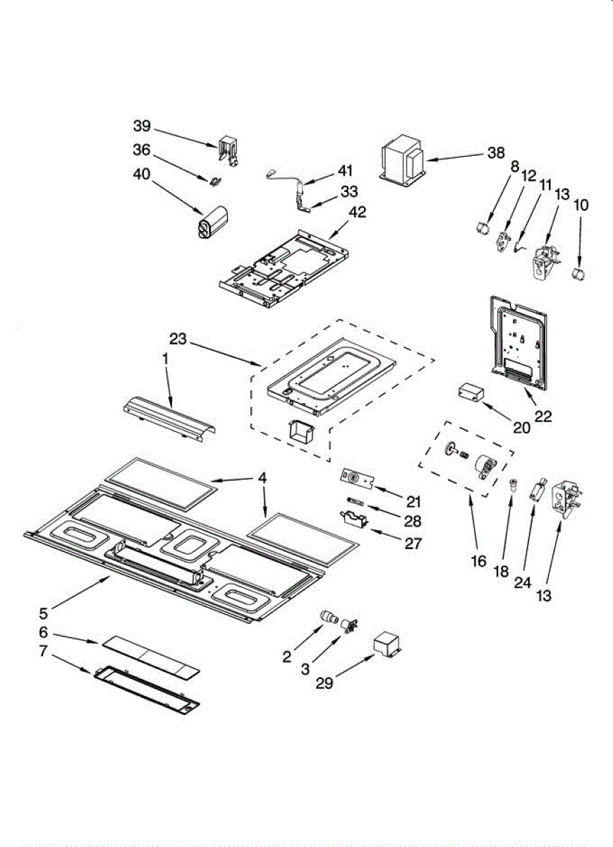 Microwave won't start or shows door open error? The bottom interlock support ensures proper door latching. Moderate DIY repair—access control panel.