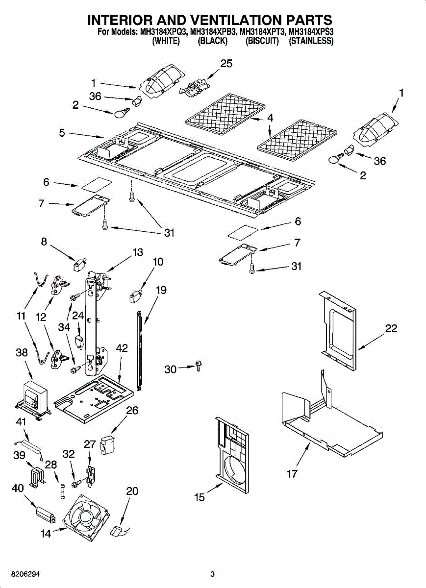 Parts for Whirlpool MH3184XPB3: 03 - Interior And Ventilation Parts