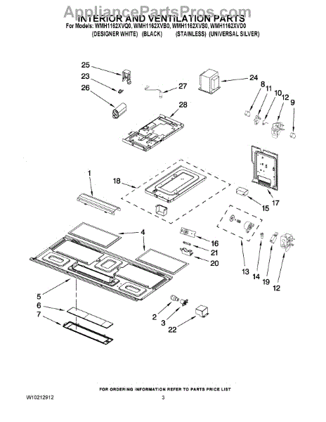 Parts for Whirlpool WMH1162XVS0: 03 - Interior And Ventilation Parts