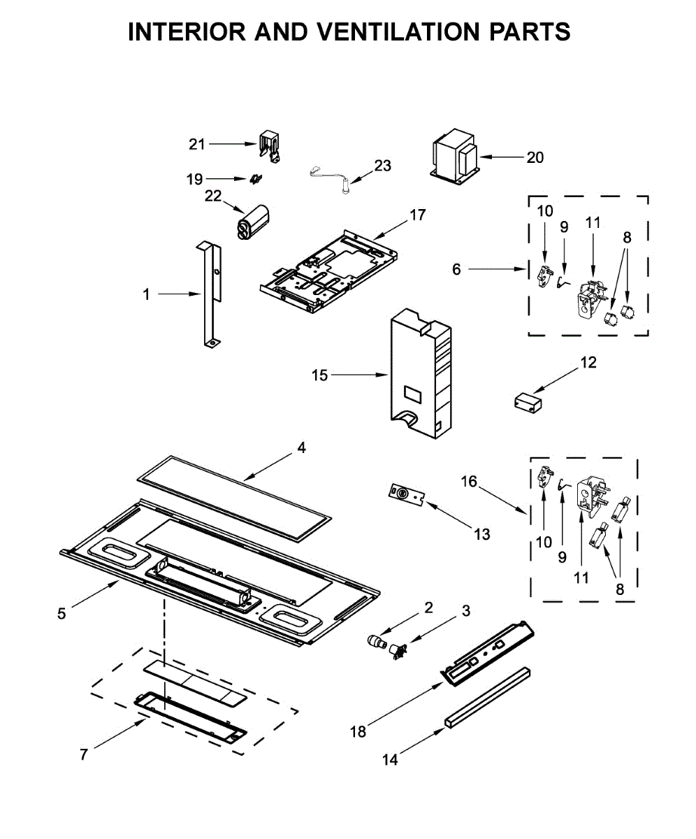 Parts for Whirlpool WMH31017FW1: Interior And Ventilation Parts