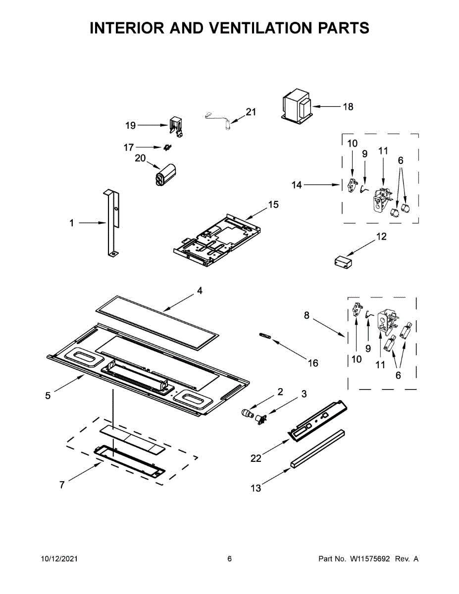 Replacement interior reflector panel for microwave cavity. Needed when original is cracked, damaged, or missing. Installs behind waveguide cover.