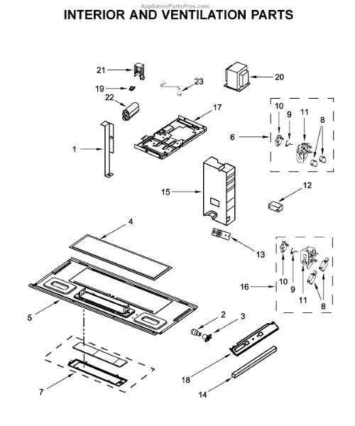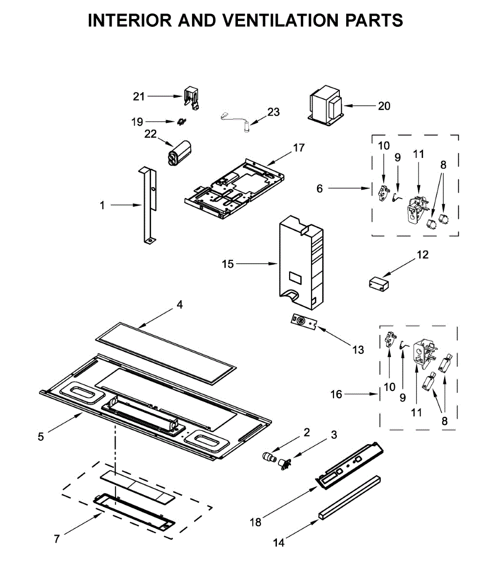 Parts for Whirlpool WMH32519HB3: Interior And Ventilation Parts