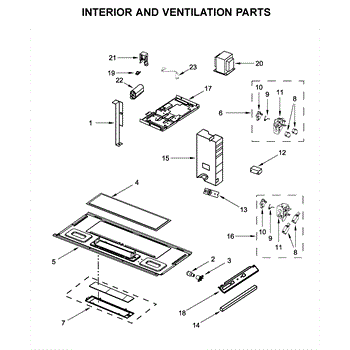 Microwave won't start or shows door open error? The bottom interlock support ensures proper door latching. Moderate DIY repair—access control panel.