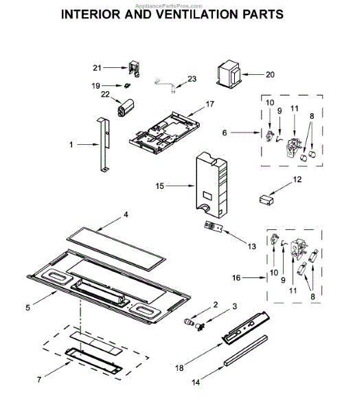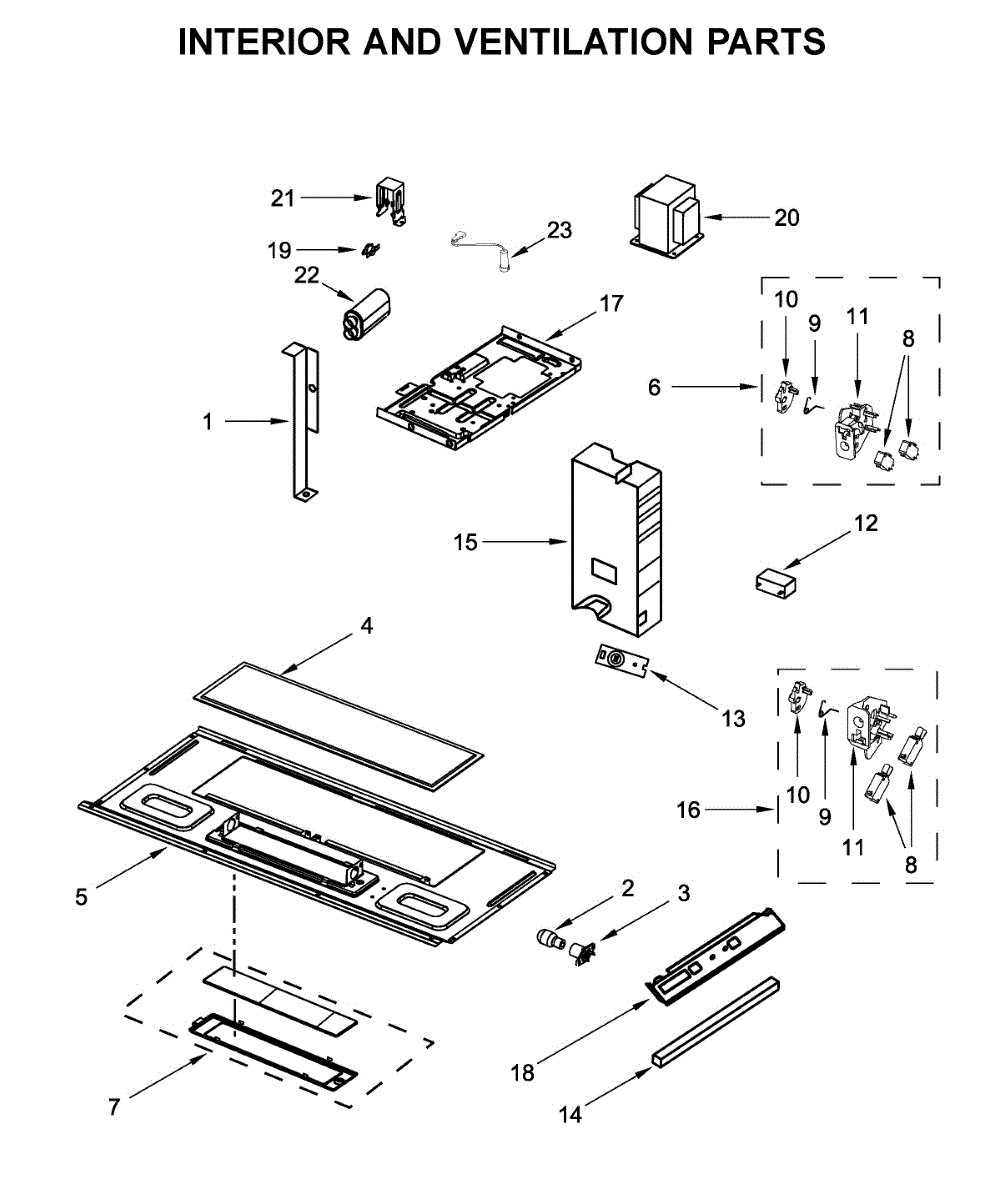 Microwave won't start or blows fuses when door closes? The door interlock support ensures safe door latching. Moderate DIY repair with careful handling.