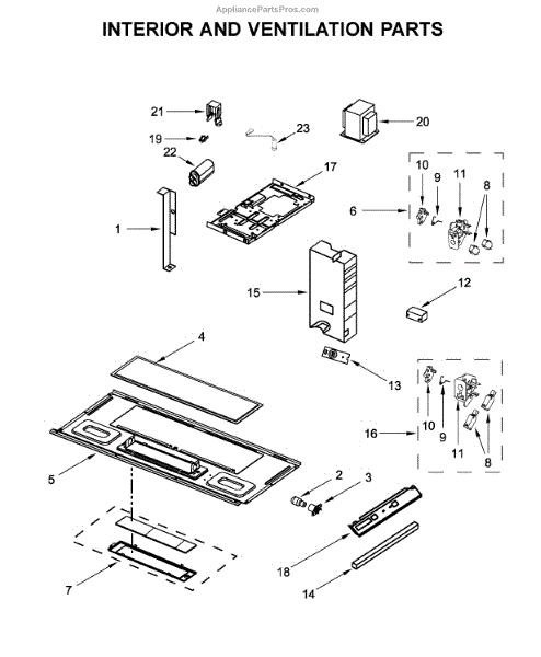Microwave won't start or blows fuses when door closes? The door interlock support ensures safe door latching. Moderate DIY repair with careful handling.