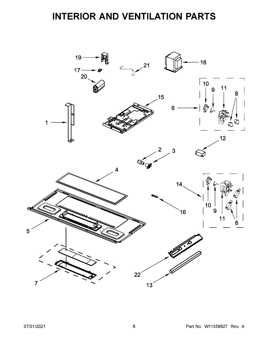 Replacement interior reflector panel for microwave cavity. Needed when original is cracked, damaged, or missing. Installs behind waveguide cover.