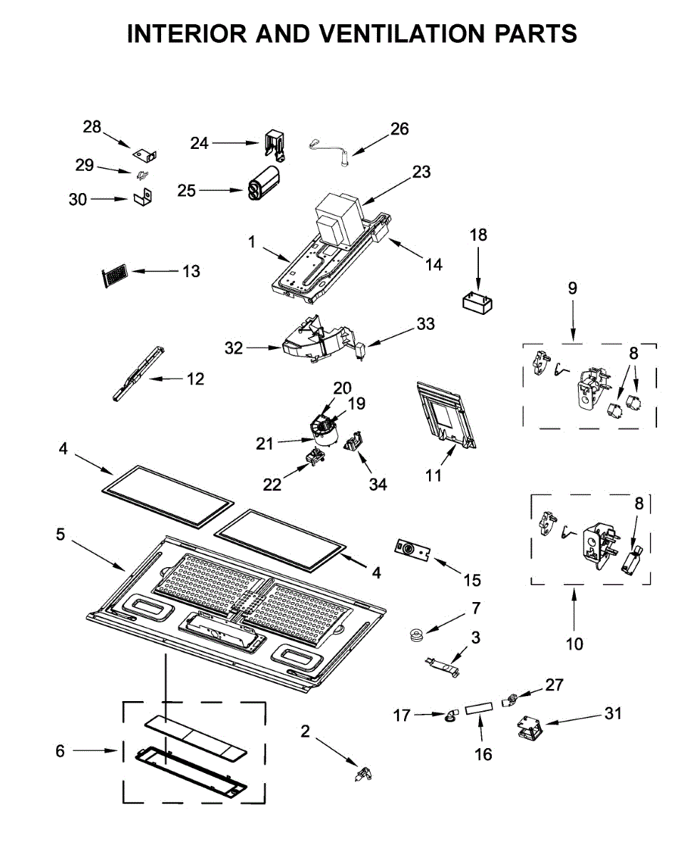 Internal shield for microwave ovens. Covers and protects internal components. Replace if cracked, dented, rusted, or missing for proper operation.