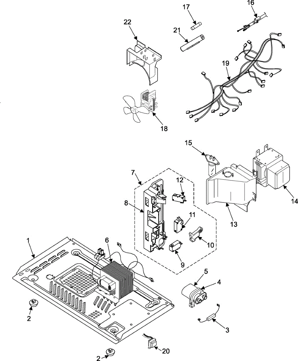 Assembly component for microwave ovens. Installs internally to support proper function. Replace if part is damaged, broken, or missing from your unit.