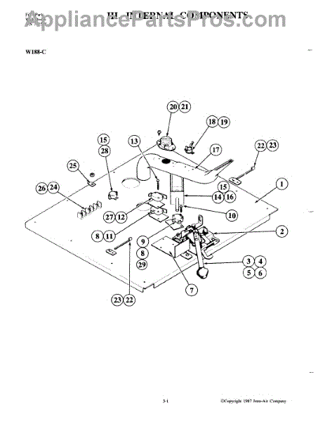 This terminal block is the insulated connection point where the appliance's incoming power ties into the internal wiring. Replacing a heat-damaged or loose block restores a safe, reliable electrical path and helps prevent arcing and intermittent power loss.