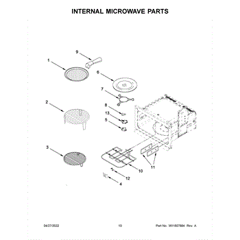 Metal rack for built-in microwave ovens. Installs inside cavity to provide elevated cooking surface. Replace if bent, warped, rusted, or missing.