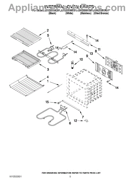 Parts for Jenn-Air JJW2830WW01: 05 - Internal Oven Parts