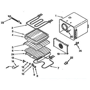 • Remove oven racks; access the element mounting screws from inside the oven cavity
