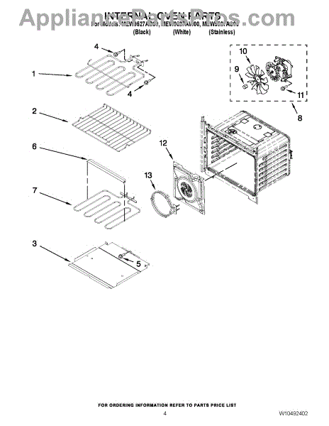 This convection fan blade mounts to the fan motor and circulates hot air during convection cycles. Replacing a bent or damaged blade restores proper airflow, promoting more even temperatures and consistent baking and roasting performance.