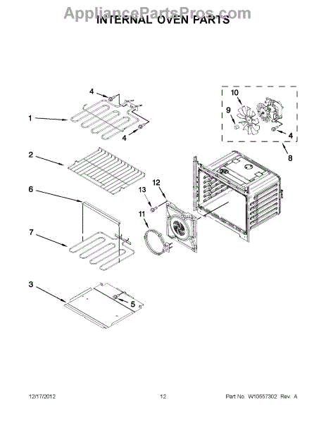 This convection fan blade mounts to the fan motor and circulates hot air during convection cycles. Replacing a bent or damaged blade restores proper airflow, promoting more even temperatures and consistent baking and roasting performance.