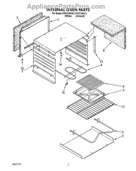 Parts for Roper FEP210VW3: 02 - Internal Oven Parts