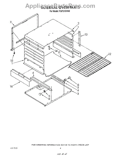 Parts for Roper FGP310VW0: 03 - Internal Oven Parts