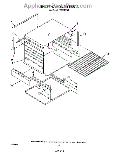 Parts for Roper FGP310VW1: 03 - Internal Oven Parts