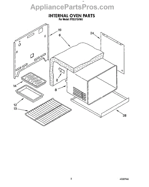 Parts for Whirlpool FES375VL0: 04 - Internal Oven Parts