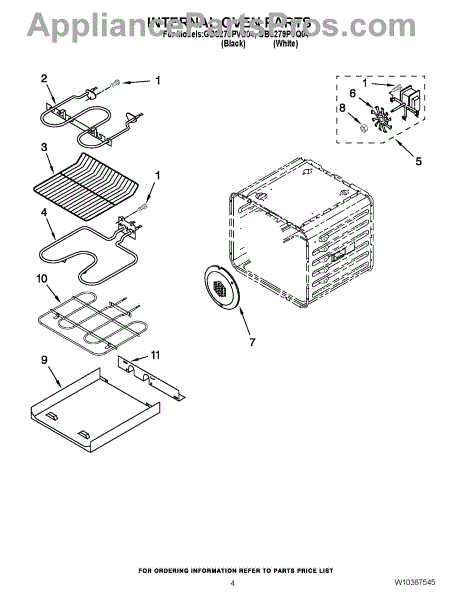 Parts for Whirlpool GBS279PVB04: 03 - Internal Oven Parts