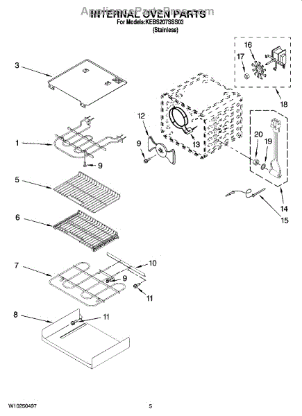 Parts for Kitchenaid KEBS207SSS03: 04 - Internal Oven Parts