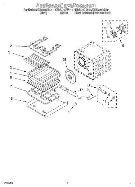 Parts for Kitchenaid KEBS278DBS11: 04 - Internal Oven Parts