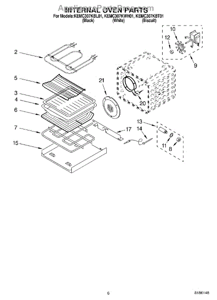 Parts for Kitchenaid KEMC307KWH01: 05 - Internal Oven Parts