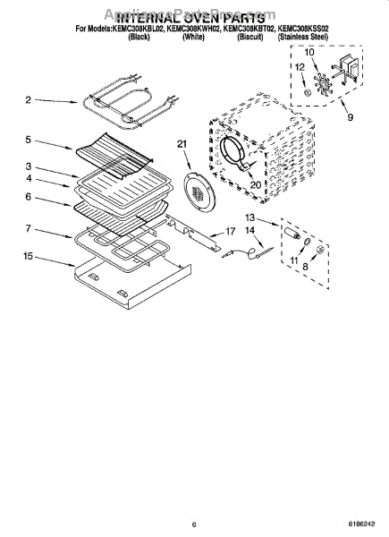 Parts for Kitchenaid KEMC308KWH02: 05 - Internal Oven Parts