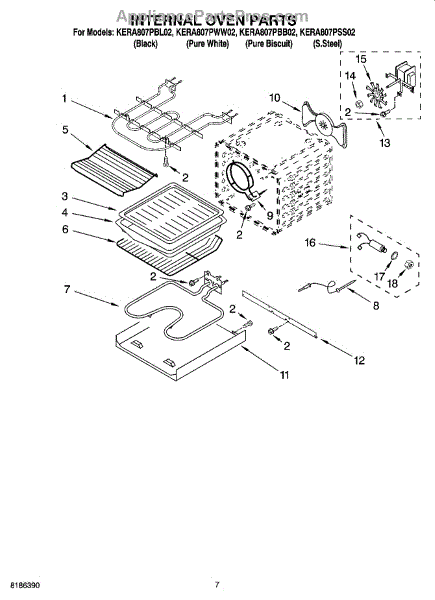 Parts for Kitchenaid KERA807PWW02: 05 - Internal Oven Parts