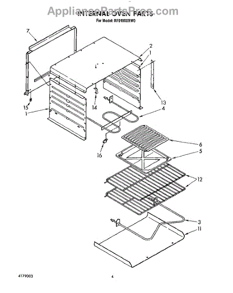 Parts for Whirlpool RF0100XRW0: 03 - Internal Oven Parts