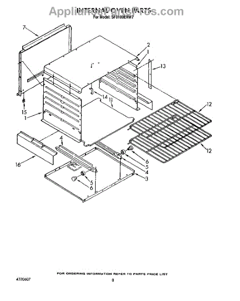 Parts for Whirlpool SF0100ERW7: 06 - Internal Oven Parts