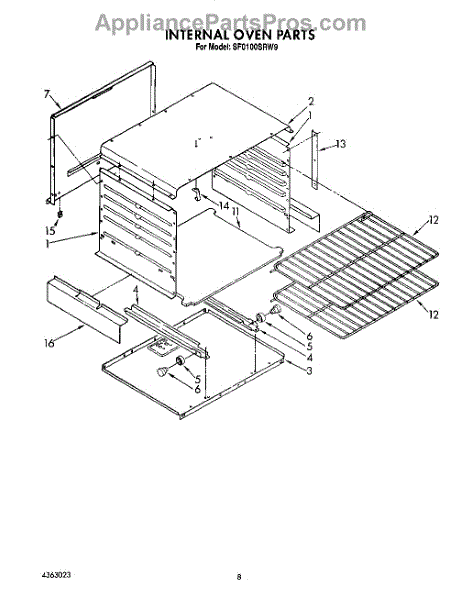 Parts for Whirlpool SF0100SRW9: 06 - Internal Oven Parts