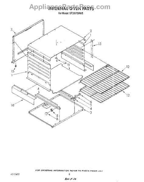 Parts for Whirlpool SF3007SRW5: 06 - Internal Oven Parts