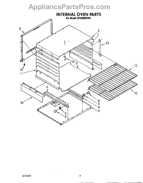 Parts for Whirlpool SF302BERW5: 03 - Internal Oven Parts