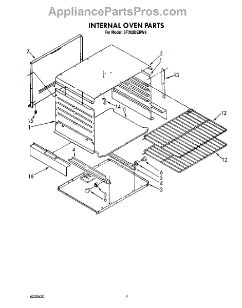 Parts for Whirlpool SF302BERW6: 03 - Internal Oven Parts