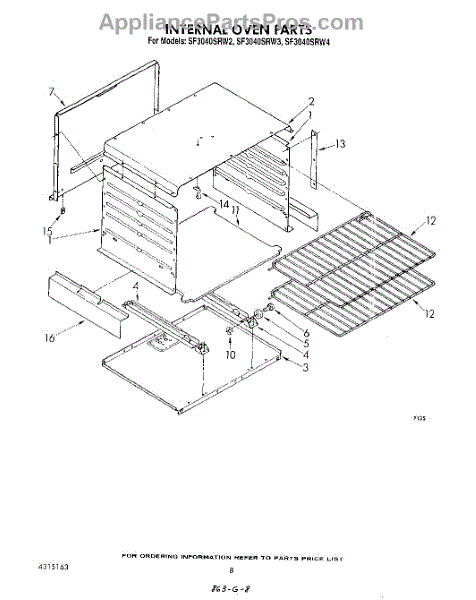 Parts for Whirlpool SF3040SRW4: 06 - Internal Oven Parts