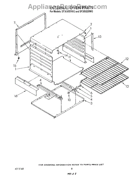 Parts for Whirlpool SF305EERW2: 06 - Internal Oven Parts