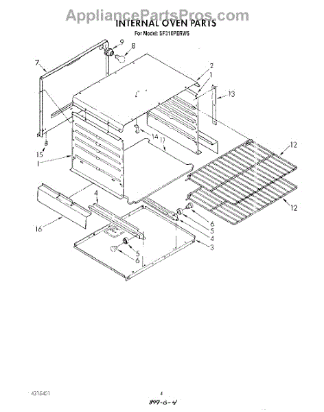 Parts for Whirlpool SF310PERW5: 03 - Internal Oven Parts