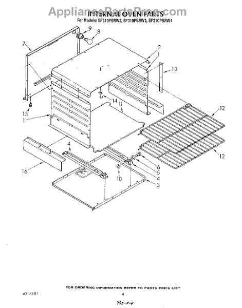 Parts for Whirlpool SF310PSRW3: 03 - Internal Oven Parts