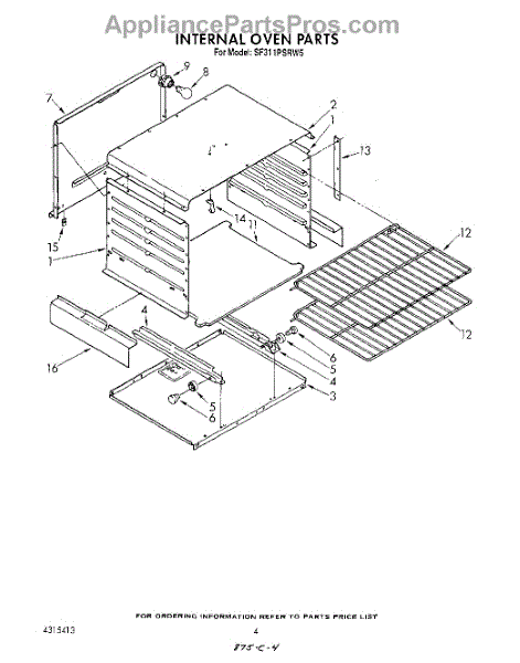 Parts for Whirlpool SF311PSRW5: 03 - Internal Oven Parts